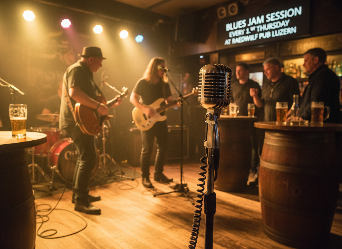 Immer am ersten Donnerstag im Monat treffen sich Musiker aus der Region zu einer offenen Probe. Patrick Archer und Freunde bilden eine solide Basis, zu der sich jeder Musiker mit der entsprechenden Grundlage gesellen darf.